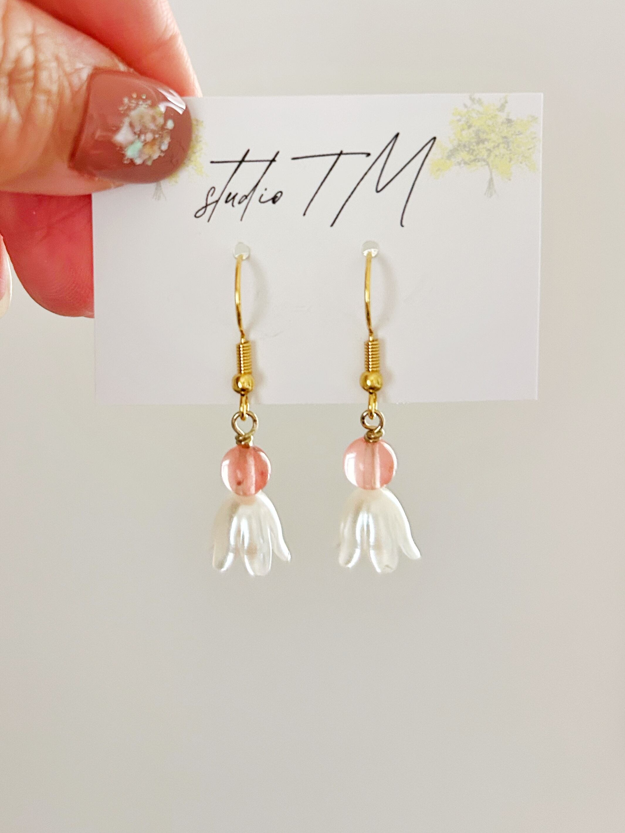 チェリークォーツとお花 小ぶり ピアス・イヤリング