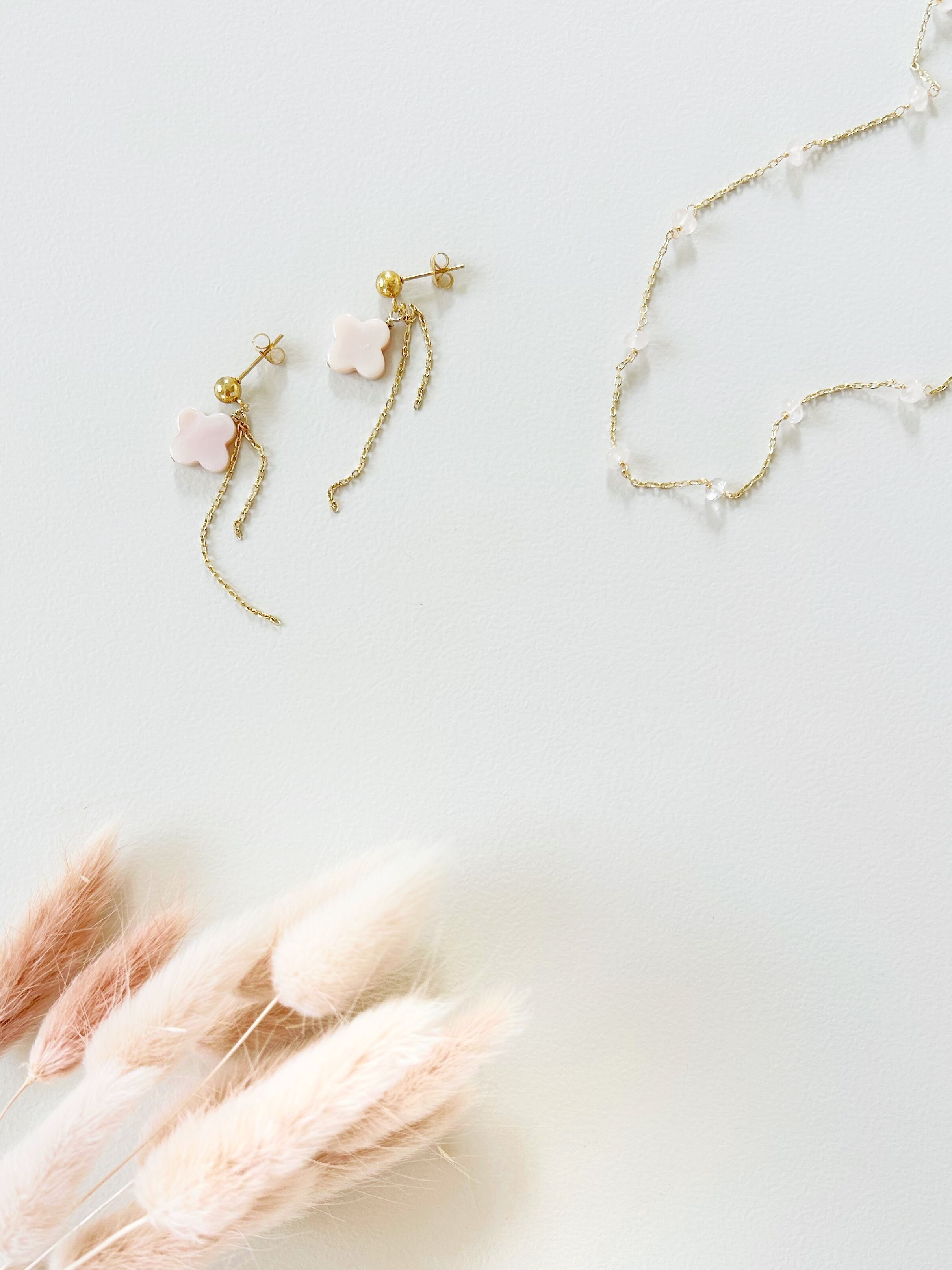 ローズクォーツ13個をチェーンと交互に